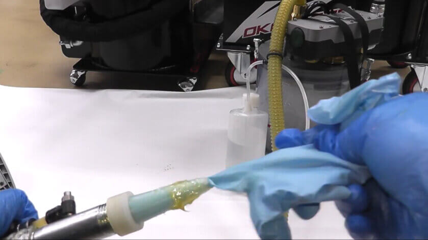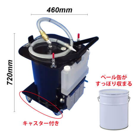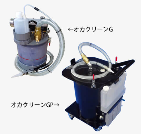 オカクリーンは、エアー式グリース・オイル吸引機で、不要になったグリース等をあっという間に吸い取ることができます。