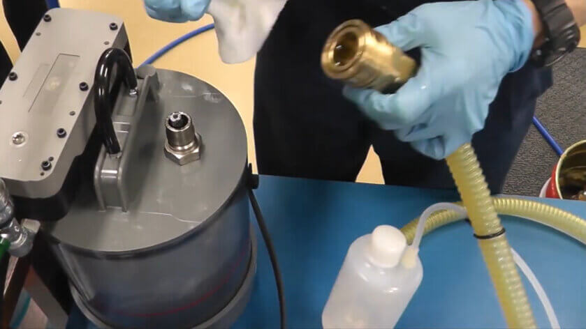 ホース内のお手入れにはピグを流し込み、流れきった後にカプラー部で回収してください。